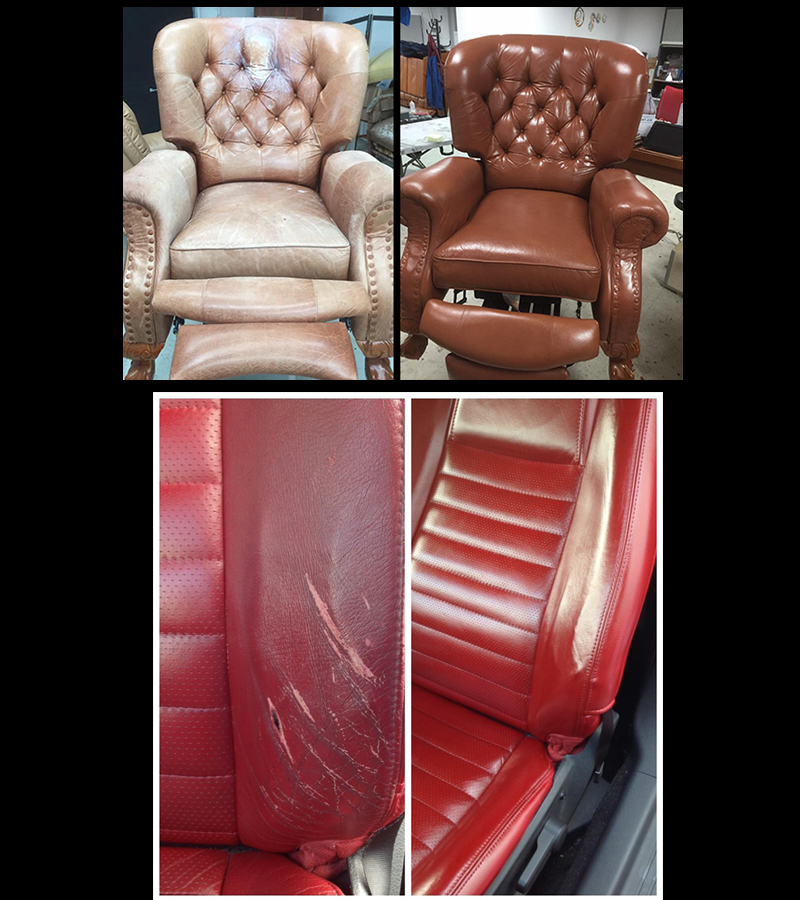 Pour réparer vos objets en cuir: divan, siège d'auto, manteau, autres.